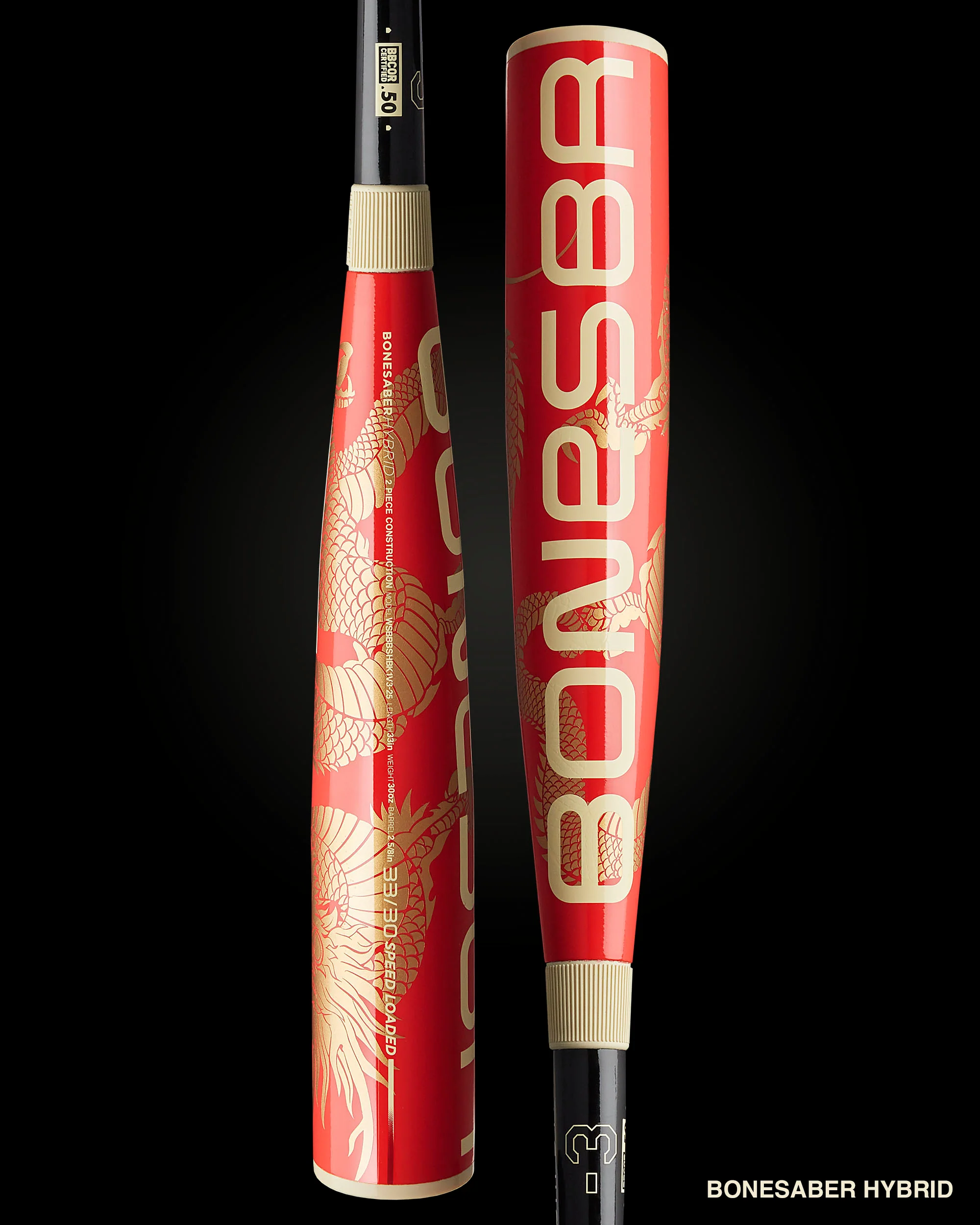 Introducing the "Warstic Customs Metal Bat #4 - Bonesaber Lucky Dragon Available in the #1 rated Bonesaber Hybrid, the Bonesaber 1 Piece metal bat, and the Bonesaber MEGA metal bat. The Lucky Dragon was crafted to commemorate the Lunar New Year...the year of the dragon.